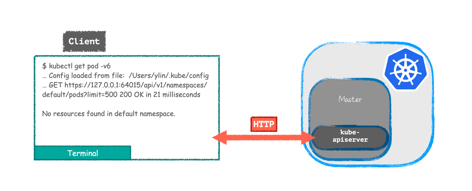 上圖中的 verbose log (flag -v6) 就顯示出指令 kubectl get pod 就是一個 HTTP GET Request 到 kube-apiserver (127.0.0.1) 的路徑 /api/v1/namespaces/default/pods。
